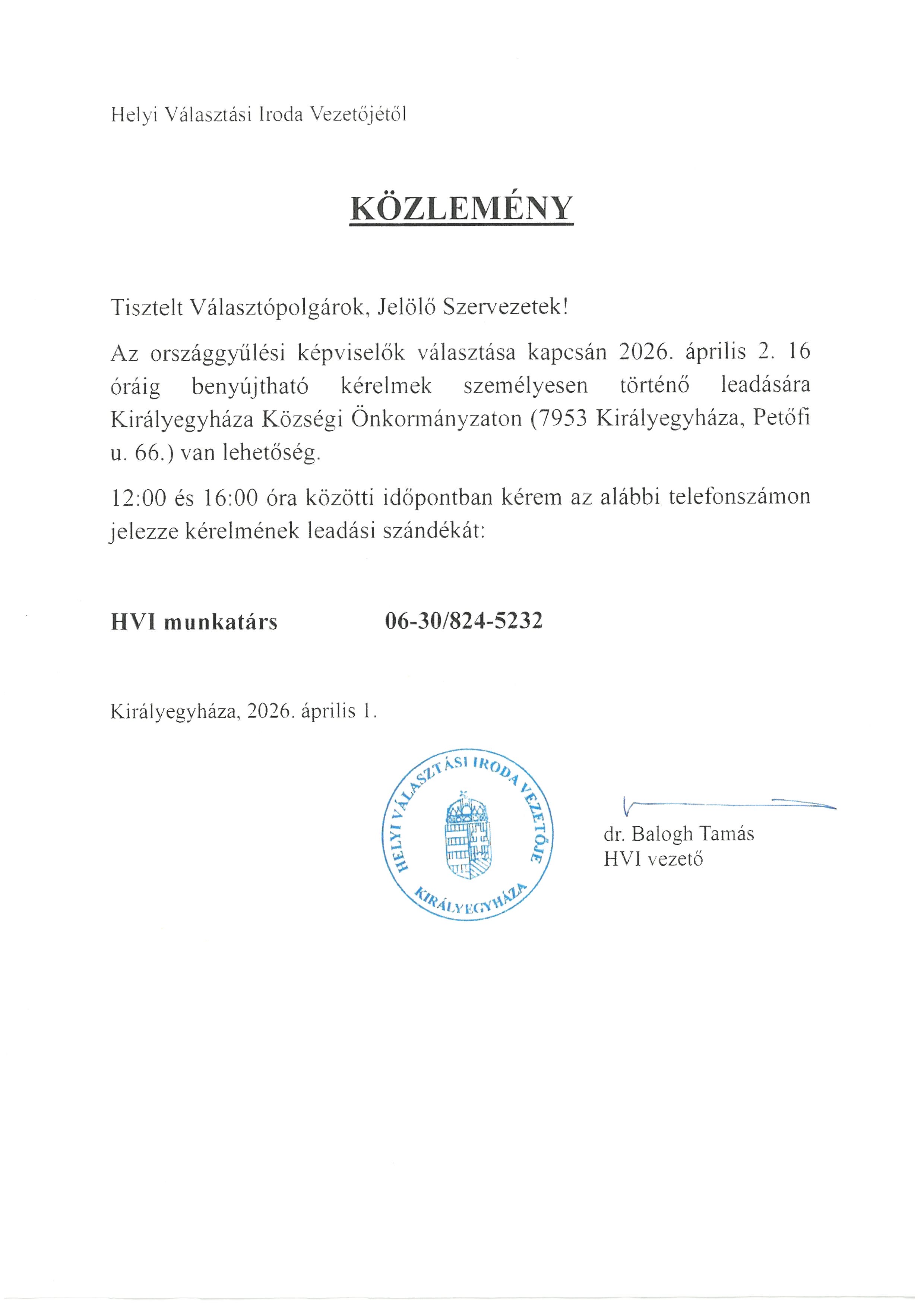 Érdeklődni Almás Roland polgármesternél lehet a 30/208-4560 telefonszámon.